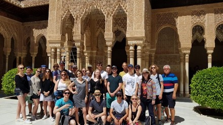 Dieser Tag startete für alle sehr früh. Treffpunkt war um 7:00 Uhr morgens an der Sprachschule, für den Ausflug nach Granada und die damit verbundene Besichtigung der Alhambra. Nach drei Stunden Busfahrt inklusive Pause begann die Besichtigung. Auf dem Weg vorbei an antiken Mauern, verziert mit arabischen Mosaiken, und schön angelegten Gärten, lernten wir etwas über die Geschichte Spaniens.
