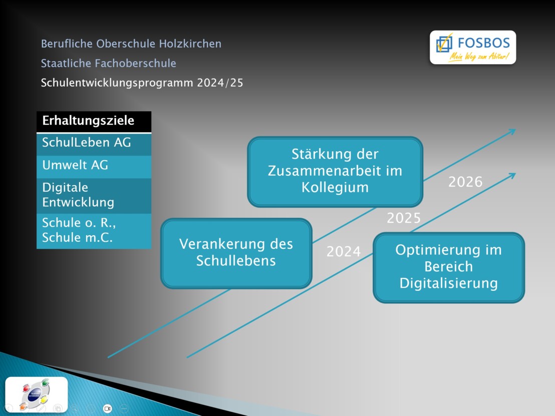 - „In einem Schulentwicklungsprogramm bündelt die Schule die kurz- und mittelfristigen Entwicklungsziele und Maßnahmen der Schulgemeinschaft […]; dieses überprüft sie regelmäßig und aktualisiert es, soweit erforderlich." (Art. 2 Abs. 4 Satz 4 BayEUG)